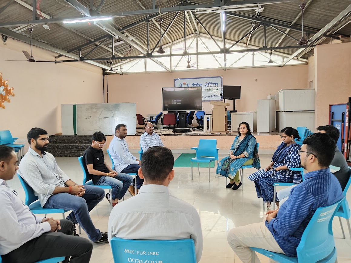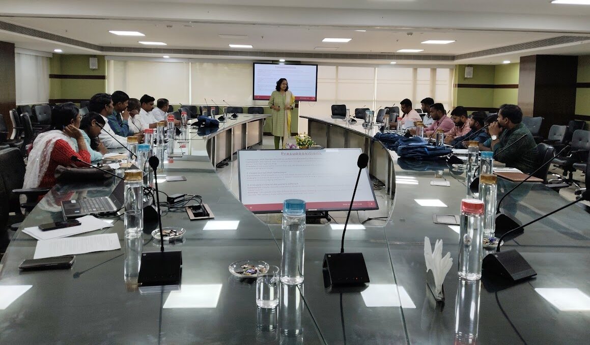 Leadership Coach Namratha Vijaykumar addressing students on the importance of Self discovery and exploring their leadership skills with confidence and curiosity.